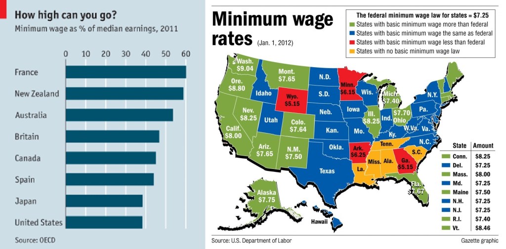 The level of profit margin is a choice. Shareholders, executives, consumers and other employees can decide what they want to advocate for. It’s a value choice. Would the executives rather live in society with very unstable economic patterns and social unrest, while they get paid astronomically more than their fellow citizens? Or are they willing to take something like a 3%, 5% or 10% pay cut, invest that money into the relationships with their workers and the overall American quality of life, thus making businesses less likely to collapse and building trust between employees and CEOs and consumers and shareholders? It’s a trade-off with serious consequences. Unless a better model is offered and developed, I see this type of logic as a necessary approach to create healthy and sustainable monetary and civic environments for as many people as reasonably possible. There are many factors that lead to a vibrant society, but fair worker pay is certainly one of them. If we are honestly trying to find the best and most equitable answers to these issues, we must be open to comparing our state’s and country’s choices on these matters in relation to other nations. We need to analyze and contemplate these issues and humbly recognize where we are failing along with possible reasons why.